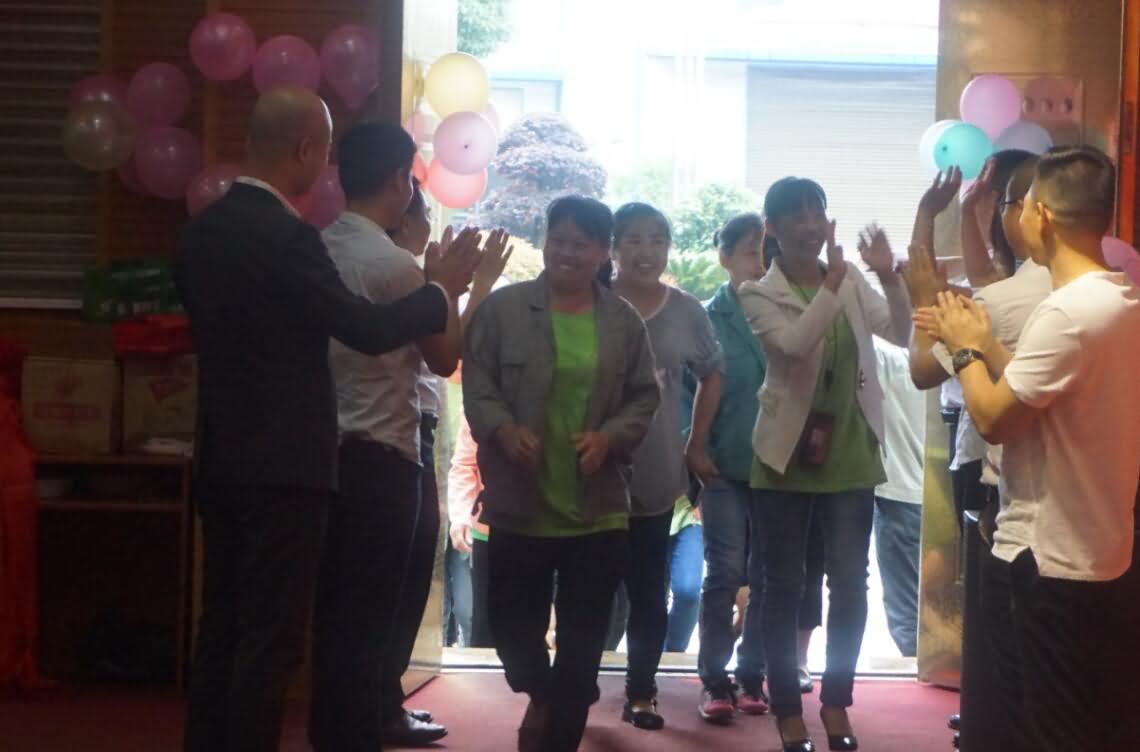 寰宇股份5月份標桿合影(左三)丁仙妹(左四)周慶梅(左五)湯世娥(左六)羅佳佳