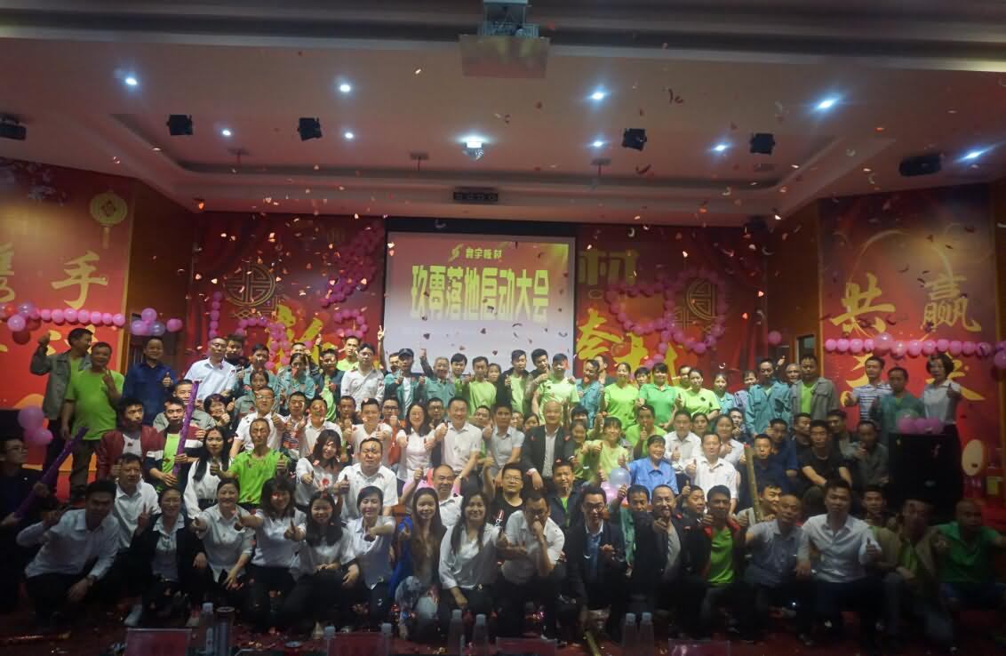 活動一開始,寰宇家人以飽滿的熱情列隊進入會場,由生產部門和營銷團隊分別組成不同方陣,進行了團隊打造,一舉將會場氣氛推向了高潮。